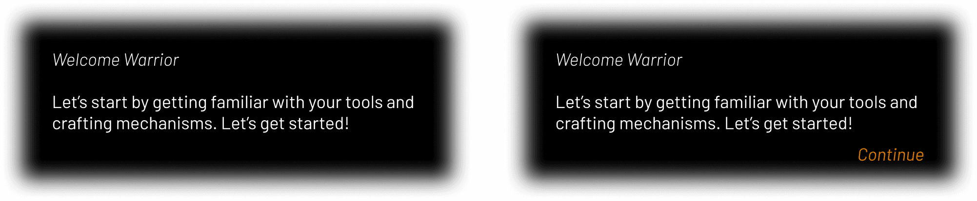 I crafted a custom UI component library tailored to the game’s world and used it throughout the tutorial experience.