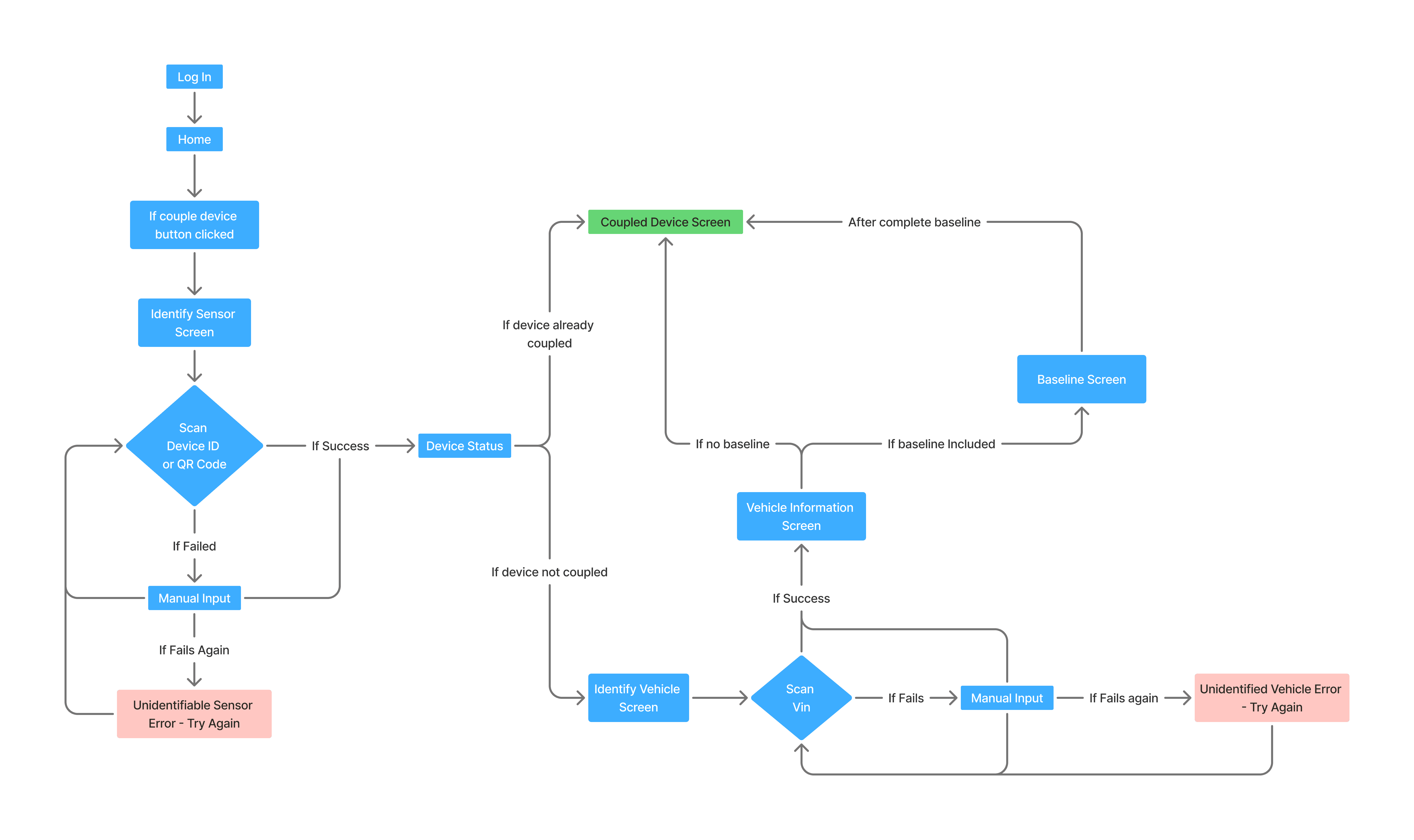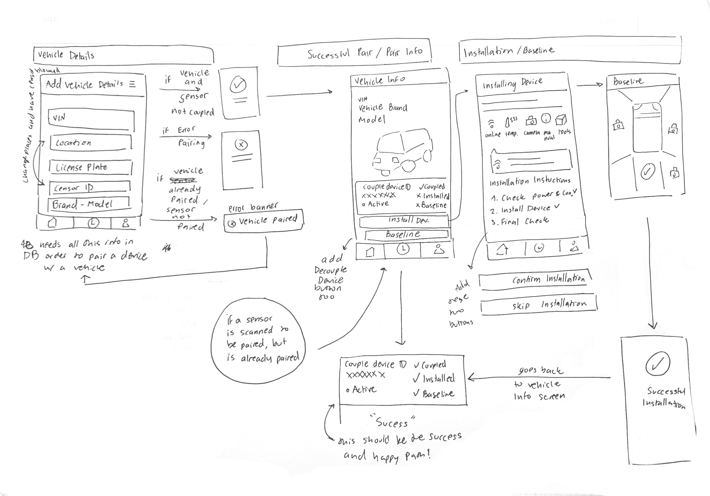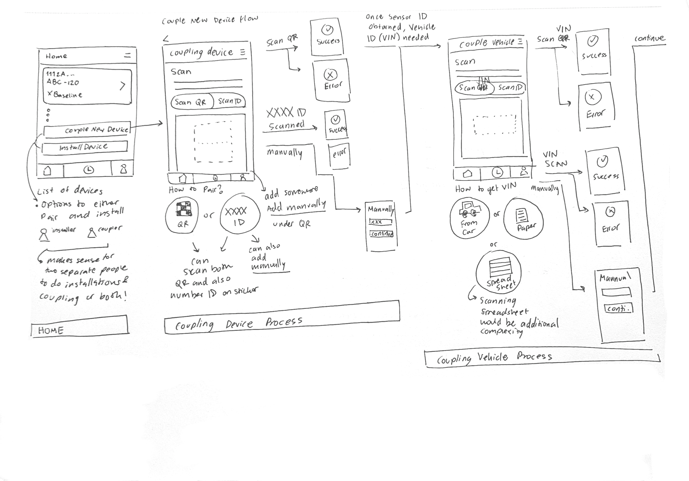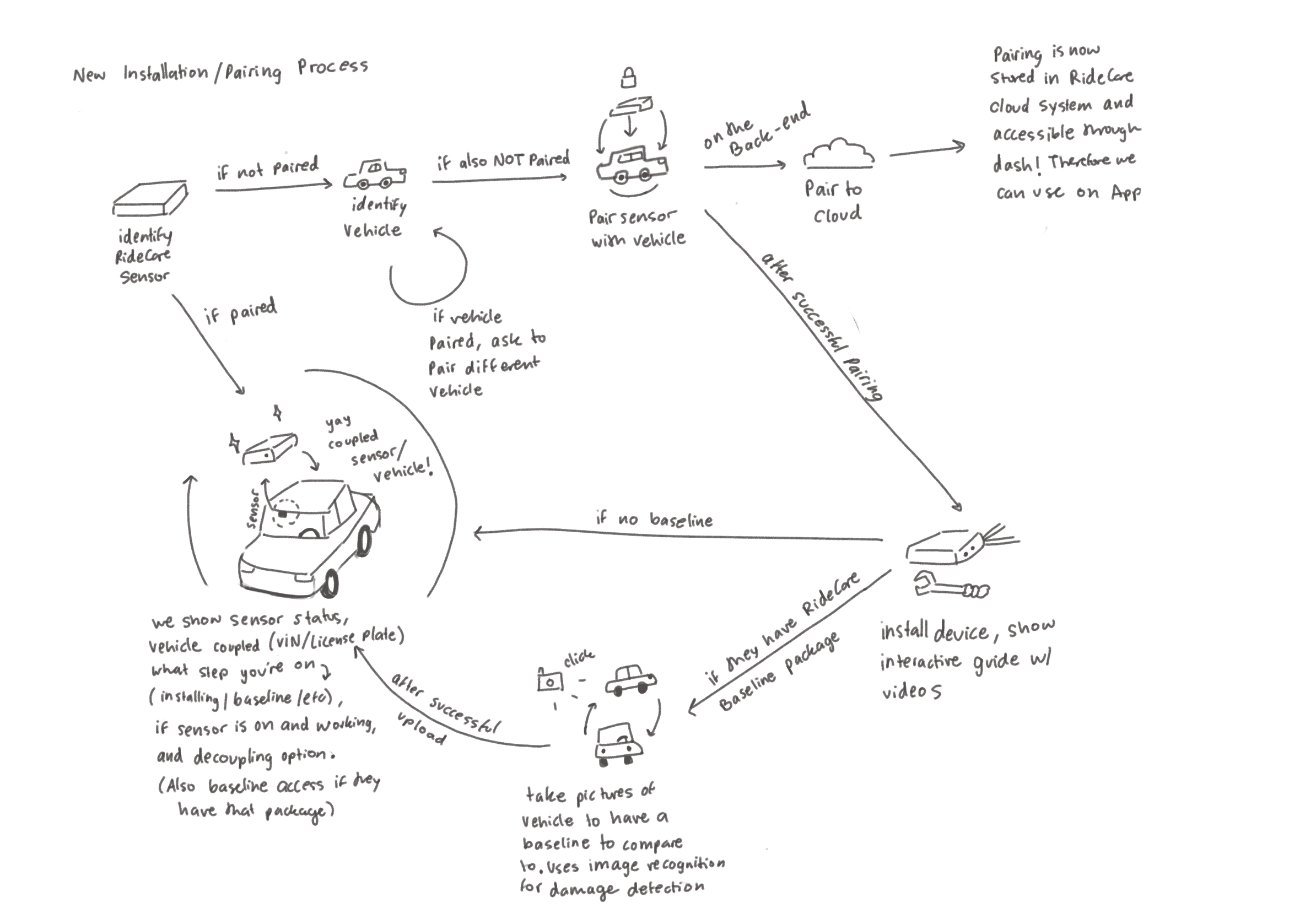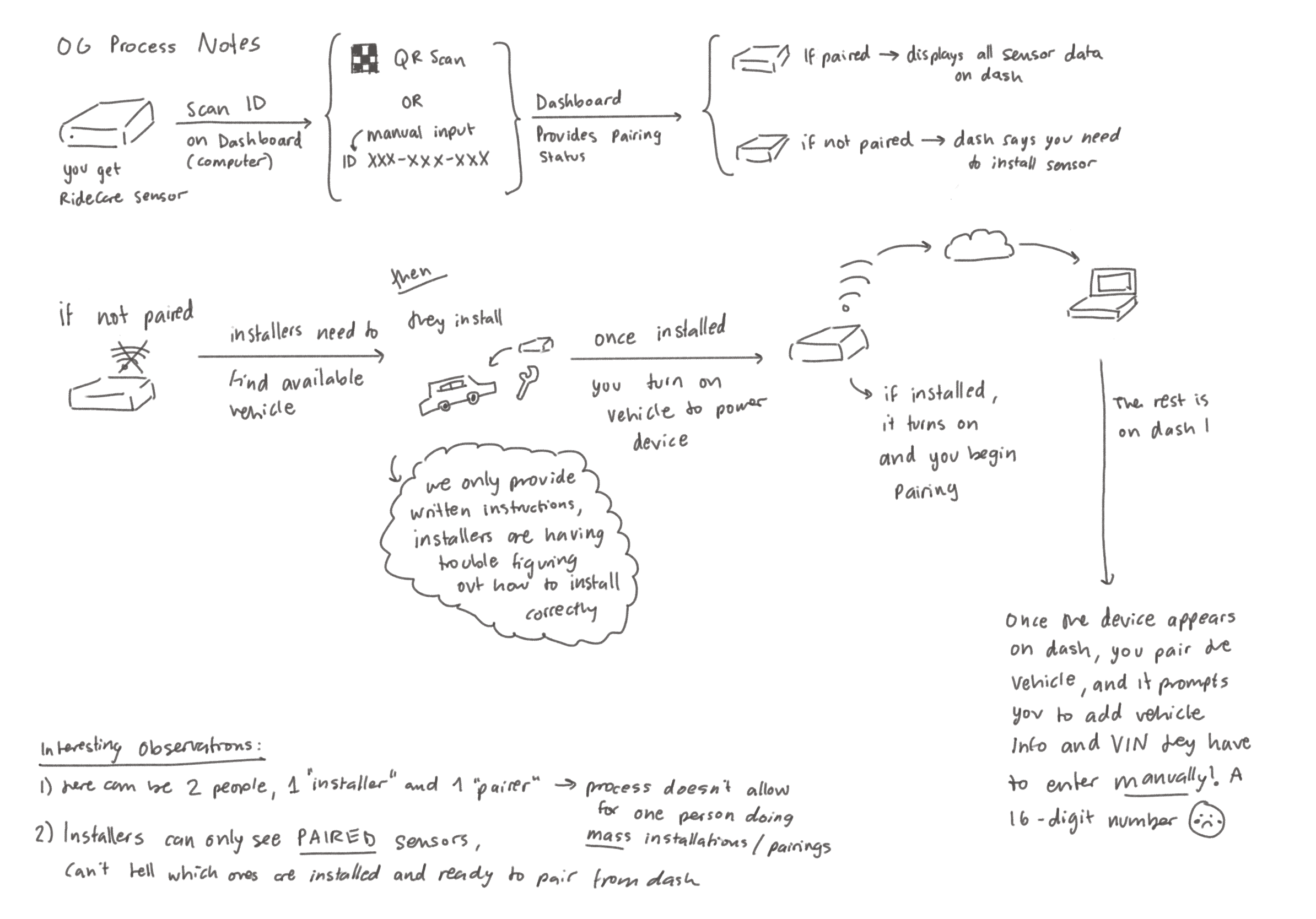 Through observation sessions, we were able to understand better installation and pairing processes, and after hours of observations I visualized what the process looked like.