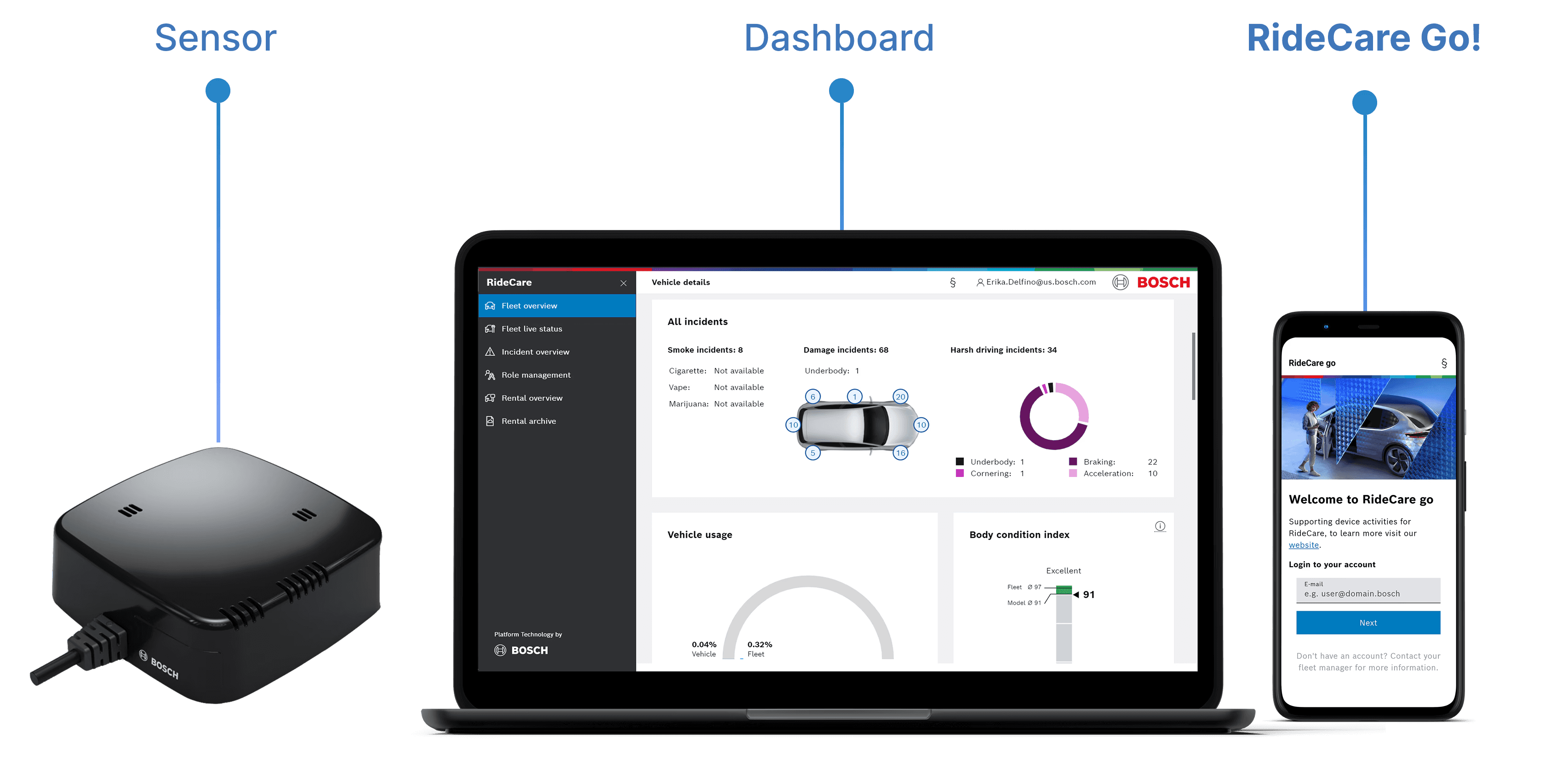 Bosch RideCare provides in-vehicle sensors that detect smoke, collisions, and harsh driving, giving fleet owners real-time insights to assess damage, improve vehicle health, and lower ownership costs.
