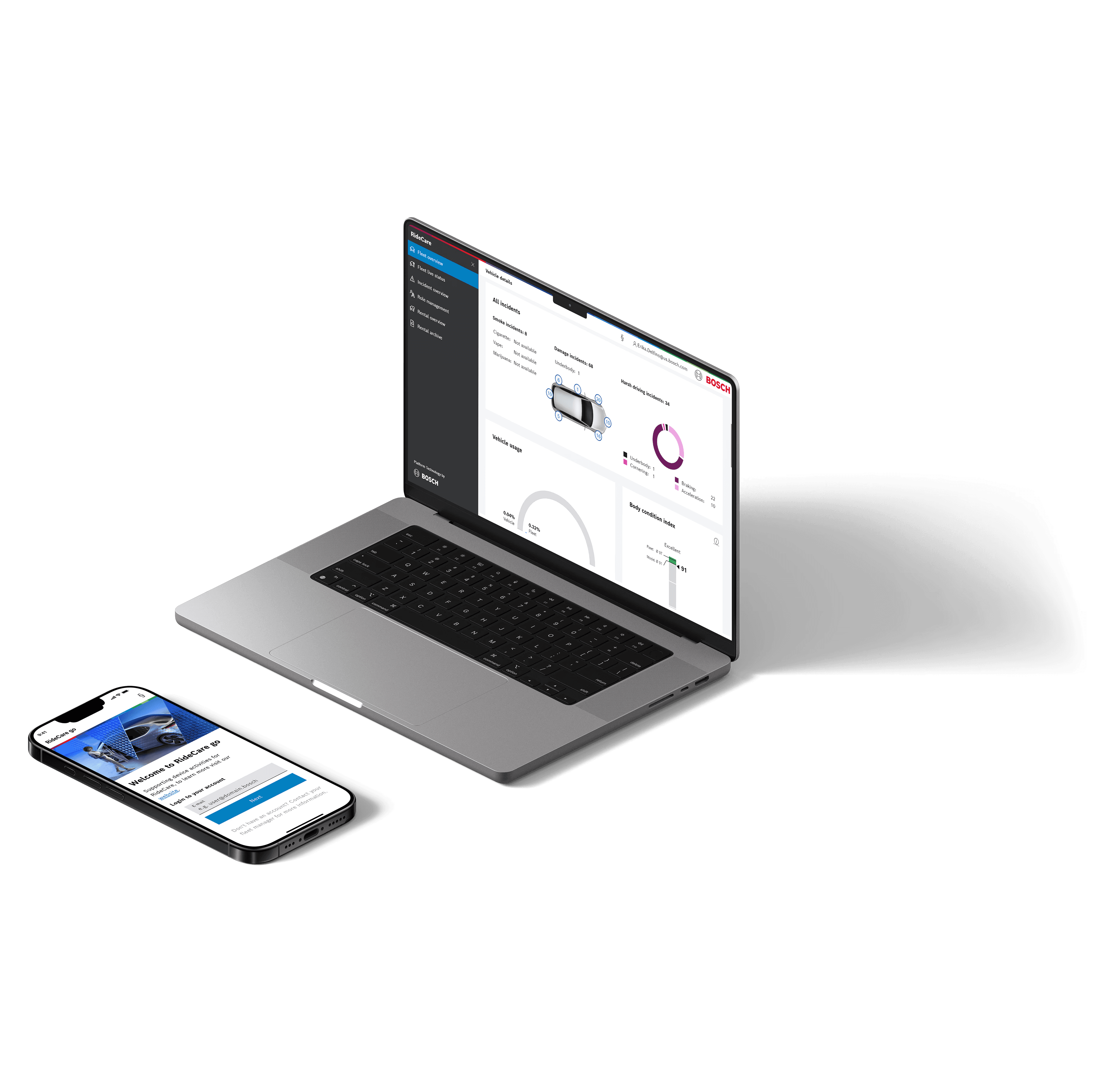 Bosch RideCare provides in-vehicle sensors that detect smoke, collisions, and harsh driving, giving fleet owners real-time insights to assess damage, improve vehicle health, and lower ownership costs.