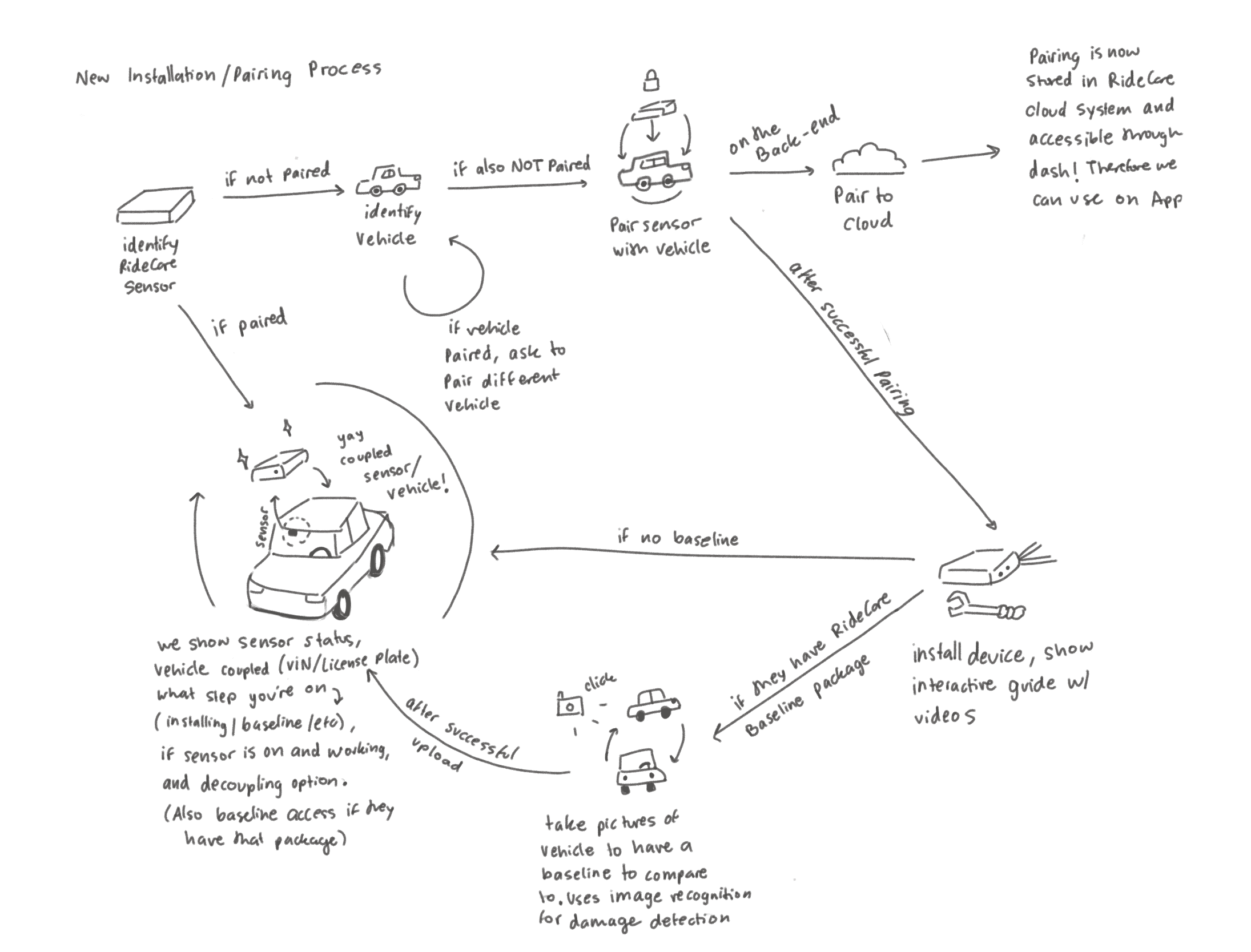 To improve the installation and pairing instructions, I worked with a service designer in RideCare's product team to conduct four observation sessions and nine installer interviews.