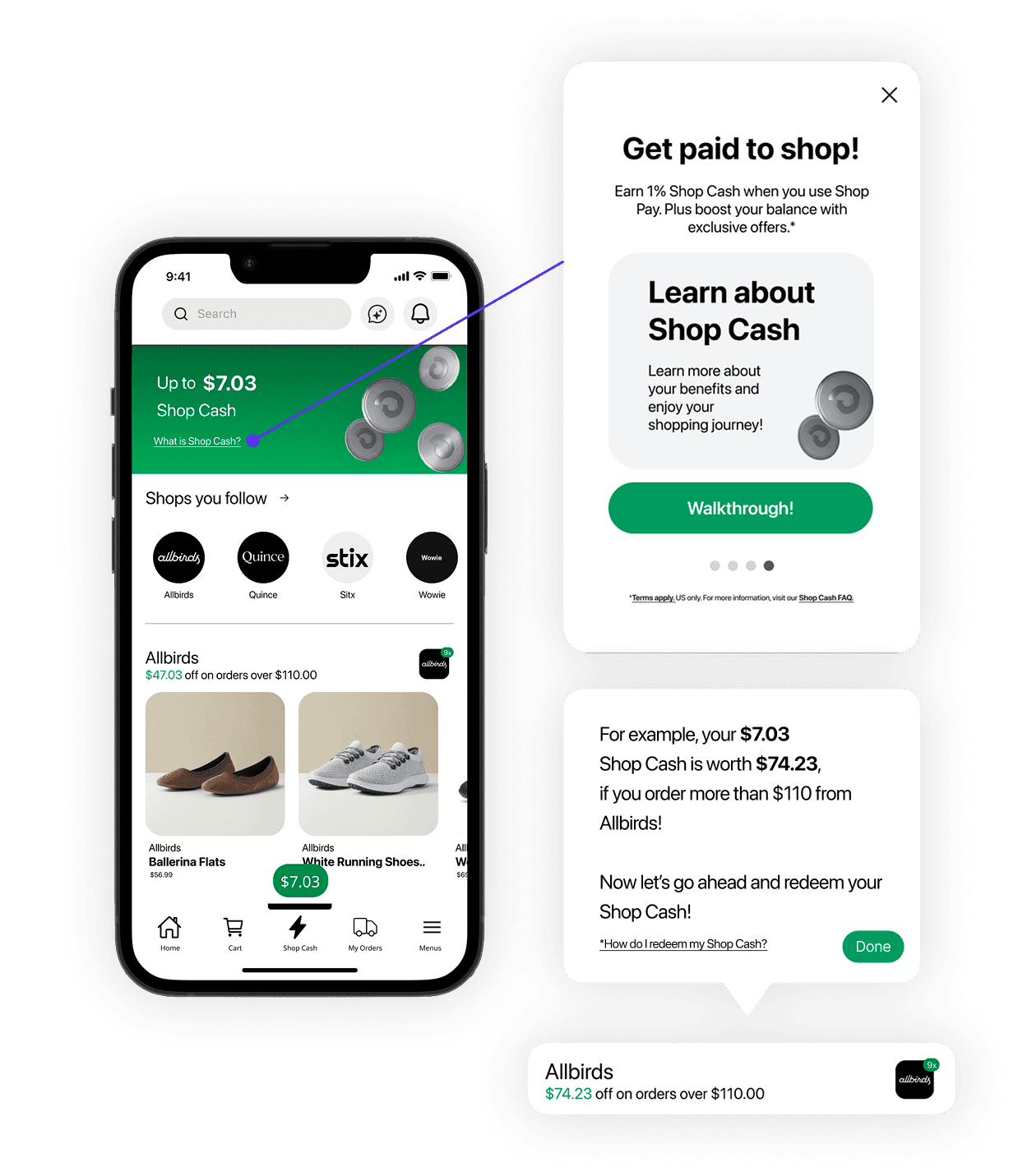 Shop Cash suffered from poor discoverability and learnability, with inconsistent messaging and visuals that made it difficult for users to understand its benefits and how it works.