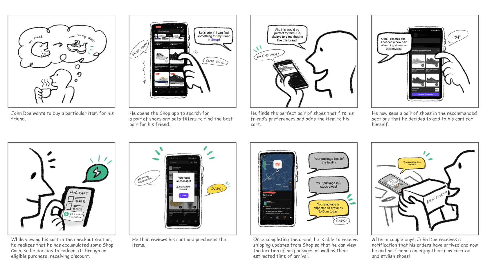 Our team conducted a task analysis and 10 usability studies to understand how people use Shop and how its core features function.